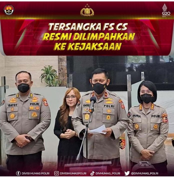 Informasi-Realita.net,Jakarta – Polri melimpahkan tersangka FS dkk terkait kasus pembunuhan berencana terhadap Brigadir J ke Kejaksaan Penuntut Umum (JPU) di Kejaksaan Agung (Kejagung), Rabu (5/10).