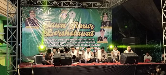 Informasi-Realita.net,Jember – Lantunan bacaan Sholawat Nabi dari Polisi Santri Polda Jatim, atau Santri yang menjadi polisi di lingkungan Polda Jatim, Sabtu (12/11/2022) malam menggema di halaman Yayasan Pon Pes Baitur Rohiem yang ada di Desa Sidodadi Kecamatan Tempurejo Jember.