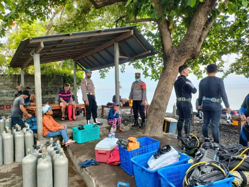 Polsek Kubu yang dipimpin langsung oleh Kapolsek Kubu AKP. I Nengah Sona, SH. didampingi Kanit Propam Polsek Kubu, Pantau giat kunjungan wisata libur panjang Natal dan Tahun Baru di Objek Wisata Bahari Tulamben tepatnya di pantai Drof Off, Desa Tulamben, Kecamatan Kubu Kabupaten Karangasem, Rabu (21/12)