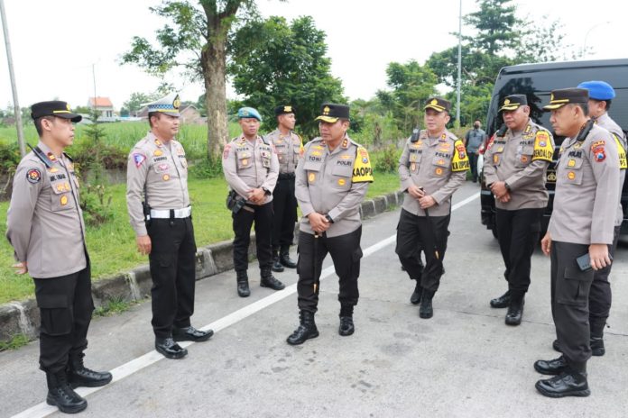 Informasi-realita.net,Mojokerto-Kapolda Jatim Dr. Toni Harmanto, M.H., bersama pejabat utama Polda Jatim didampingi Kapolresta Mojokerto AKBP Wiwit Adisatria S.H., S.I.K., M.T melaksanakan pemantauan Pos Pelayanan (Posyan) Ops Lilin Semeru 2022 di Exit Tol Penompo Mojokerto, Senin (26/12/22)