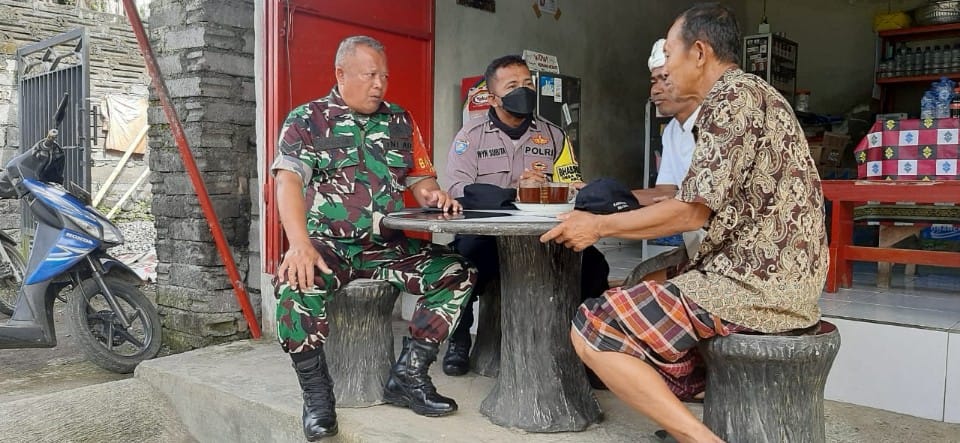 Bhabinkamtibmas Desa Kerta Buana Polsek Sidemen Aipda I Wayan Subita dan Babinsa Sertu I Nengah Sudarsana melaksanakan giat sambang ke warga binaan di Banjar Dinas Tohjiwa, Desa Kerta Buana, Kecamatan Sidemen Kabupaten Karangasem, Kamis 29/12/22