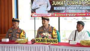 Kapolres Badung AKBP Leo Dedy Defretes, SIK, SH, MH mengatakan hari ini merupakan kegiatan sekian kalinya dalam bentuk membangun komunikasi dengan seluruh stakeholder maupun masyarakat yang dikenal Mesadu Pak Kapolres. Jumat Curhat ini dilaksanakan serentak di Indonesia oleh jajaran Kepolisian Republik Indonesia.