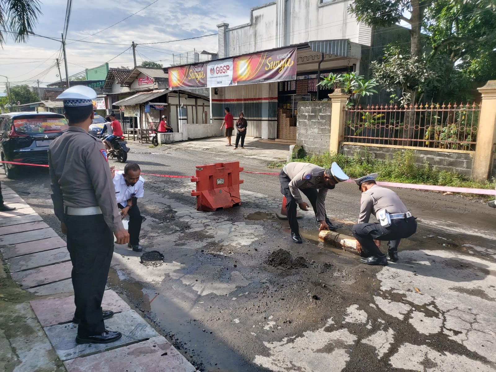 AKP Achmad Rochan menambahkan, untuk sementara petugas gabungan tadi menambal lubang jalan di lokasi menggunakan karung berisi pasir.