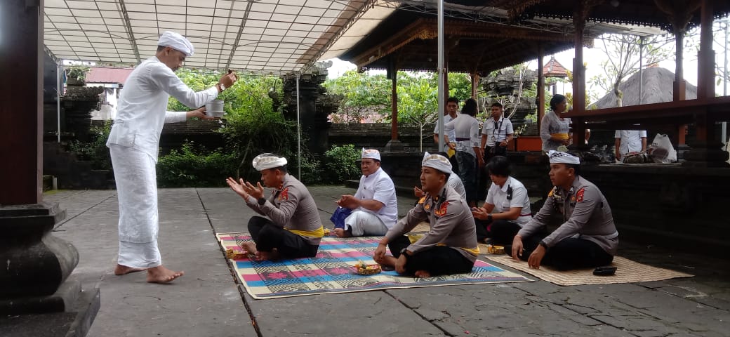 Kapolda Bali beserta rombongan melaksanakan persembahyangan di Pura Penataran Agung Besakih dipimpin oleh JERO MANGKU SUECA,Pukul 16.15 wita Bapak Kapolda Bali selesai melaksanakan persembahyangan.