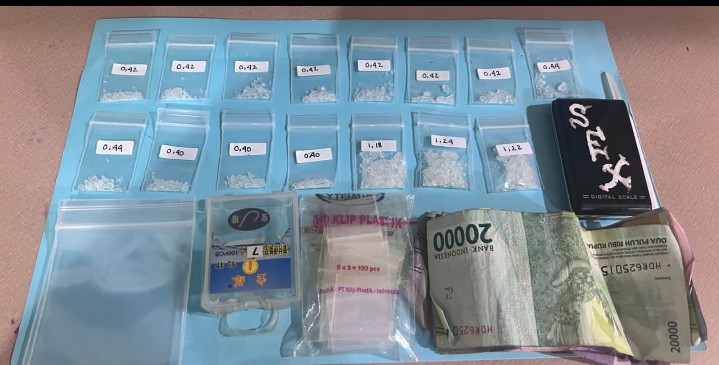 “Usai menangkap pelaku, polisi menemukan barang bukti sabu yang sudah ditimbang dalam kemasan paket dan dimasukkan ke plastik warna bening,” katanya.
