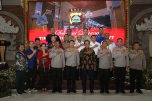 Hadir Kapolda Bali Irjen. Pol. Drs. Putu Jayan Danu Putra, S.H., M.Si., didampingi Wakapolda Bali Brigjen. Pol. Drs. I Ketut Suardana, M.Si., dan Seluruh PJU Polda Bali saat menerima Rombongan Polda NTT dalam Studi Banding di Polda Bali, bertempat di Gedung PRG, Kamis (19/1/2022).
