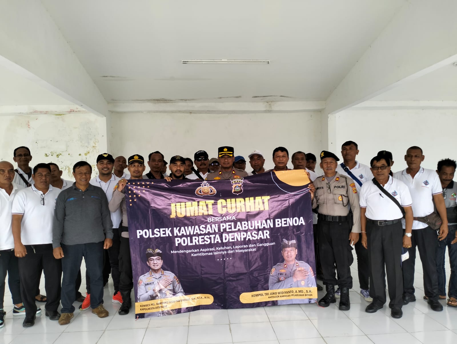 Dengan bertempat di Terminal Domestik Pelabuhan Benoa hadir kurang lebih 75 orang yaitu GM PT Pelindo III Benoa beserta staf dan masyarakat di pelabuhan serta pejabat utama Polsek Kawasan pelabuhan benoa, kegiatan Curhat Jumat di Komunitas Bahari Transport ini dalam upaya Polri Tercipta Harkamtibmas yang kondusip dimana Komunitas Bahari transport dapat melayani wisatawan yang turun dari Kapal Cruises dalam perjalananya berwisata ketempat tujuan dengan ramah aman & nyaman serta lancar