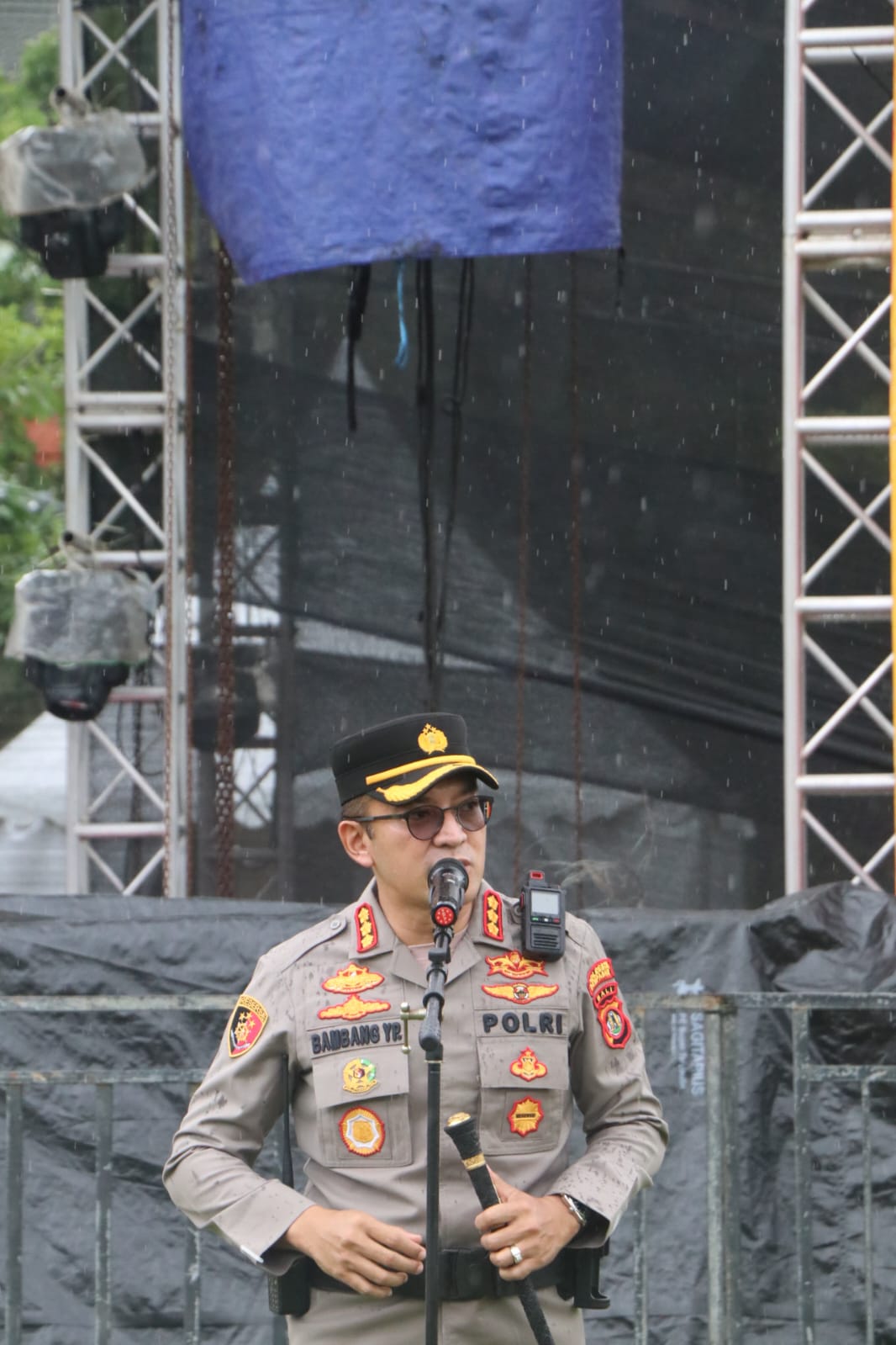 Bambang Yugo mengucapkan trimakasih kepada seluruh personil yang sudah menyempatkan hadir dalam rangka Apel Pengamanan festival Imlek 2574 tahun 2023 di lapangan Puputan Badung ini.