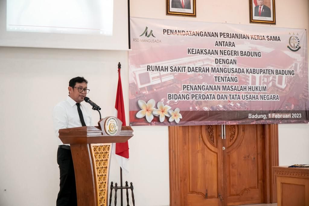 Perjanjian kerjasama ini merupakan langkah awal dalam pelaksanaan tugas pokok dan fungsi Jaksa Pengacara Negara (JPN) pada seksi perdata dan tata usaha negara Kejaksaan Negeri Badung dalam memberikan bantuan hukum, pertimbangan hukum, serta tindakan hukum lainnya terhadap permasalahan hukum perdata dan tata usaha negara yang dialami oleh Rumah Sakit Daerah Mangusada Kabupaten Badung selaku satuan kerja perangkat daerah di Kabupaten Badung.