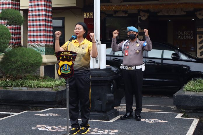 Polda Bali, Polres Badung-Selesai melaksanakan olah raga pagi Wakapolres Badung Kompol Putu Diah Kurniawandari, SH, SIK, MH ajak seluruh personil Polres Badung membersihkan lingkungan dan merawat tanaman di lingkungan Mapolres, jalan Kebo Iwa No 1, Kecamatan Mengwi, Kabupaten Bandung, Bali. Jumat, (3/2) pagi 08.00 wita.