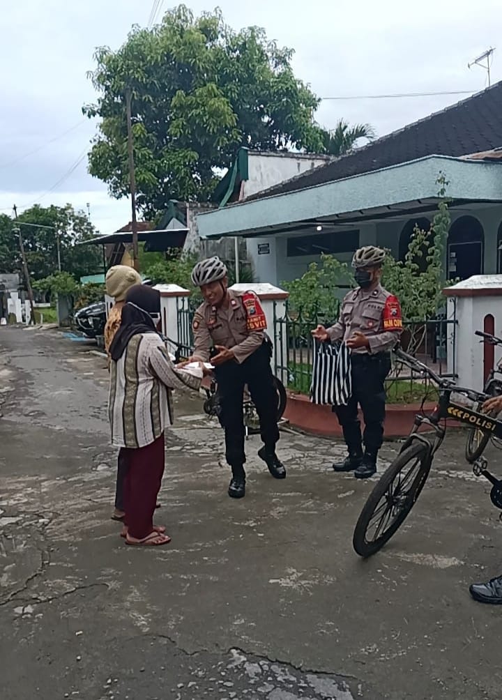 Satsamapta Polres Blitar melaksanakan giat patroli sepeda sambil membagikan nasi bungkus kepada sejumlah warga yang membutuhkan, sebagai salah satu bentuk pendekatan kepada masyarakat, Jumat (24/02/2023).