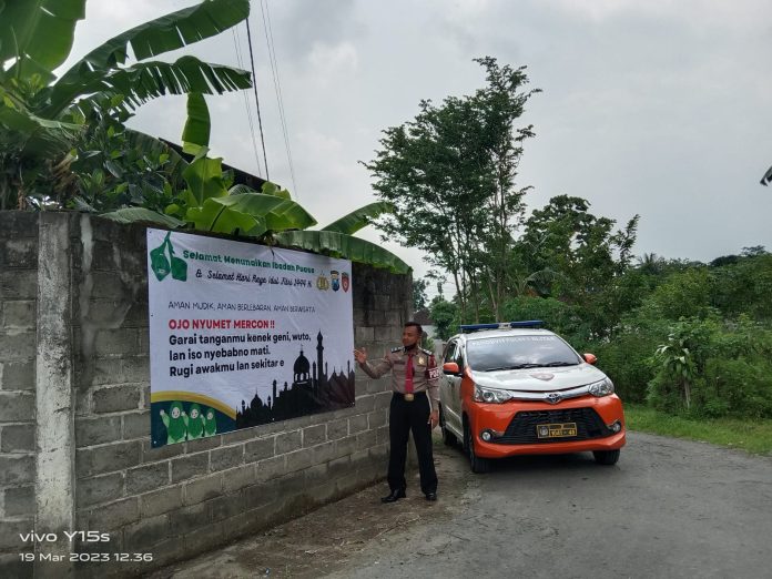 Di samping memasang imbauan larangan petasan, anggota patroli unit Obvit juga menyampaikan pesan Kamtibmas menjelang bulan Ramadhan dan Idul Fitri.