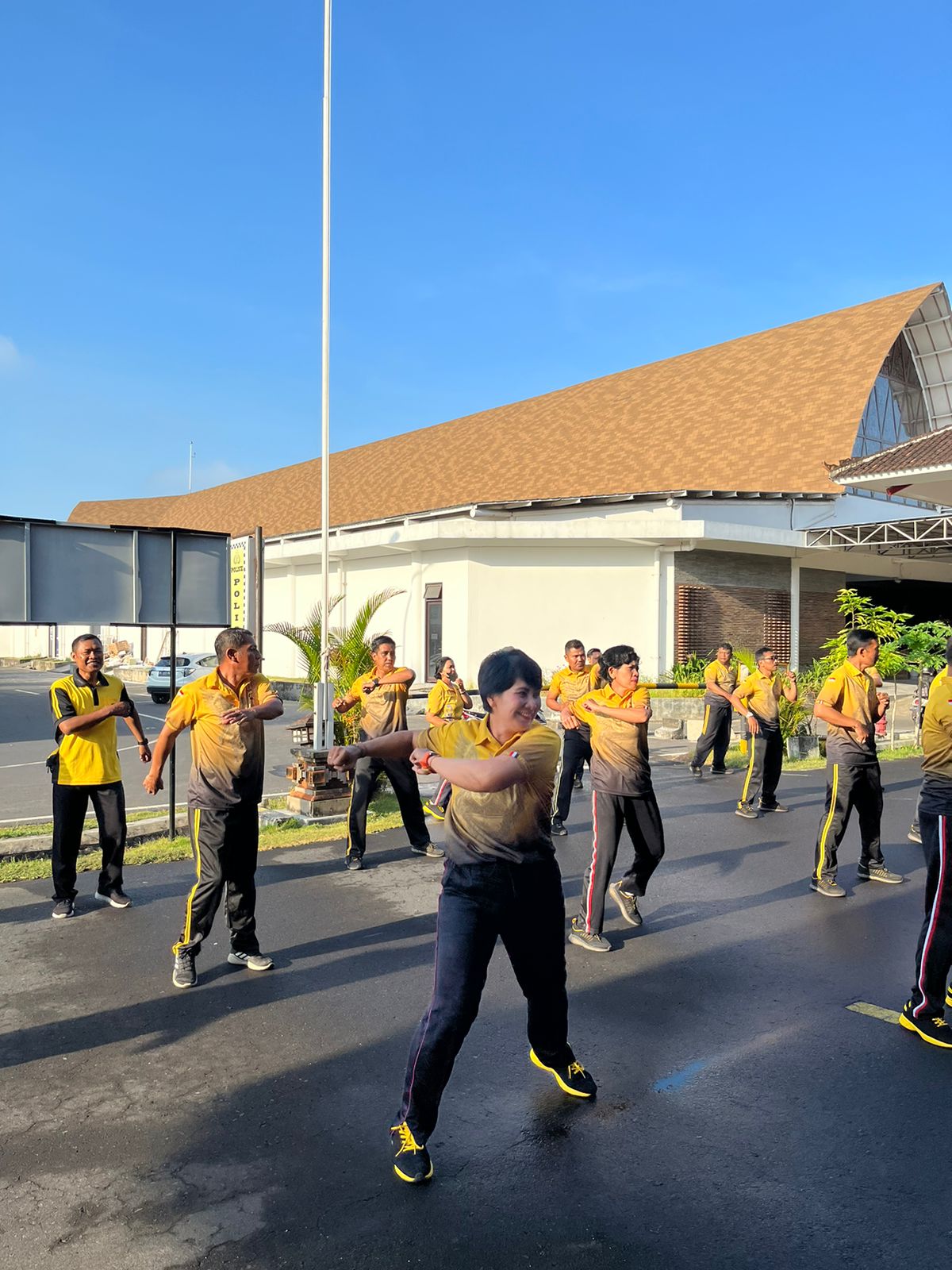 Polres Bandara- Polres Kawasan Bandara I Gusti Ngurah Rai pada sabtu pagi (25/3), kembali menggelar kegiatan olah raga bersama dengan melaksanakan senam aerobix yang dilaksanakan di halaman mapolres setempat.