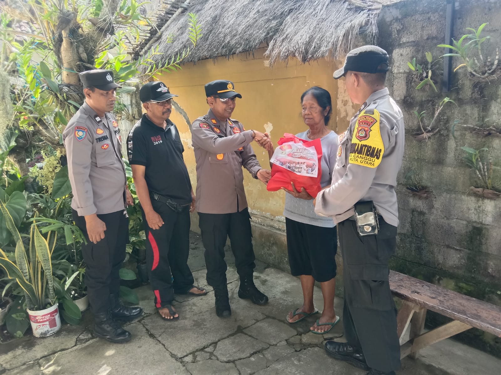Bantuan Paket sembako tersebut disalurkan oleh Waka Polsek Kuta Utara AKP AA Ketut Nuasa S.Sos di dampingi Panit 2 Binmas Aiptu Nengah Sutresna dan Bhabinkamtibmas Desa Canggu Aiptu Putu Agus Wahyu Arta Negara.