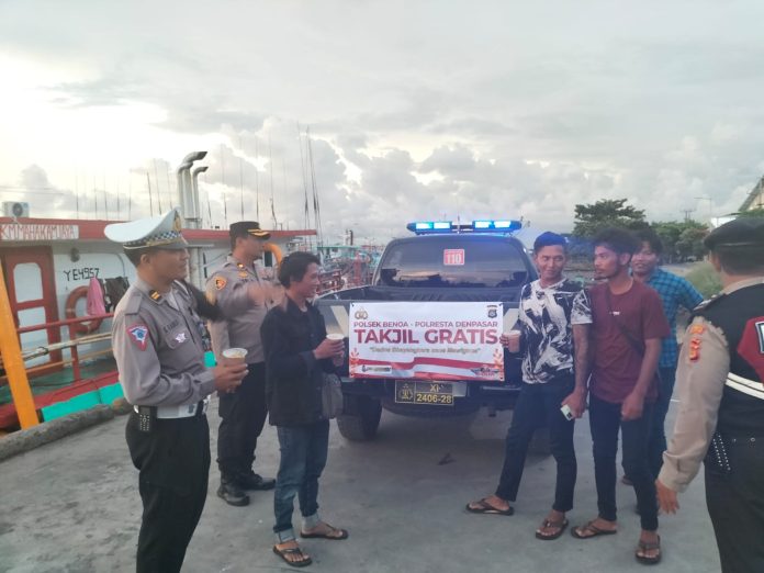 DENPASAR-Untuk yang pertama kalinya selama bulan Suci Ramadhan,Kapolsek Kawasan Benoa gelar bhakti sosial kemanusiaan dengan berbagi takjil Ramadhan di area Kawasan Pelabuhan Benoa. Kamis, 06/04/2023.