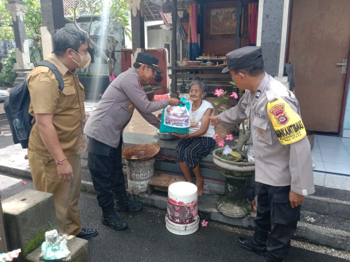 Polda Bali, Polres Badung, Polres Badung-Kepolisian Sektor Kuta Utara terus bagikan sembako gratis ke masyarakat kurang mampu. Sebelumnya telah di bagikan di wilayah Kelurahan Kerobokan, Kini giliran Bansos dibagikan di wilayah Kelurahan Kerobokan Kaja Kecamatan Kuta Utara, Kabupaten Badung. Selasa (11/4) pagi.