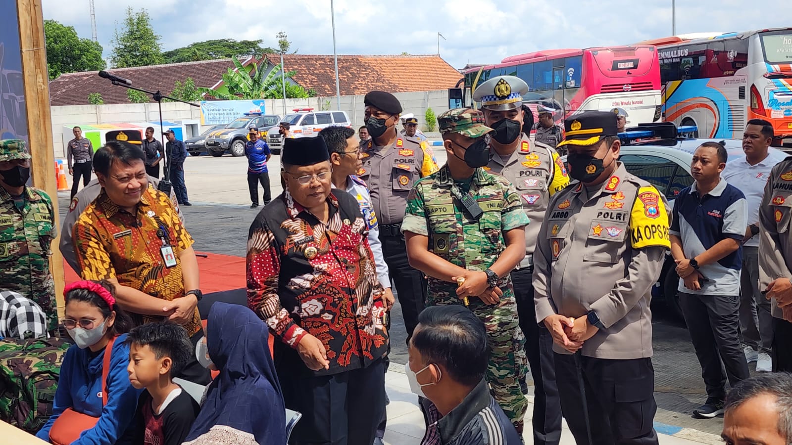 Polres Blitar Kota memfasilitasi sebanyak 60 orang pemudik mengikuti program balik mudik gratis 2023 di Terminal Tipe A Patria Kota Blitar, Jumat (28/4/2023).