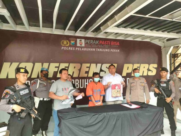 “Tersangka membacok korban hingga 3 kali mengenai leher, punggung dan tangan korban hingga mengakibatkan korban meninggal dunia,” jelas AKP Arief Rizki. Selasa (09/05/2Arif Rizki Kasatreskrim Polres Pelabuhan Tanjung Perak menambahkan, mengetahui kejadian tersebut anggota melakukan olah tempat kejadian perkara serta menggali informasi terhadap saksi mengetahui kejadian tersebut. Kemudian mengarah terhadap kepada seorang residivis kasus penganiayaan pada tahun 2017 yakni AR, dari informasi pelaku melarikan diri ke Sampang Madura.