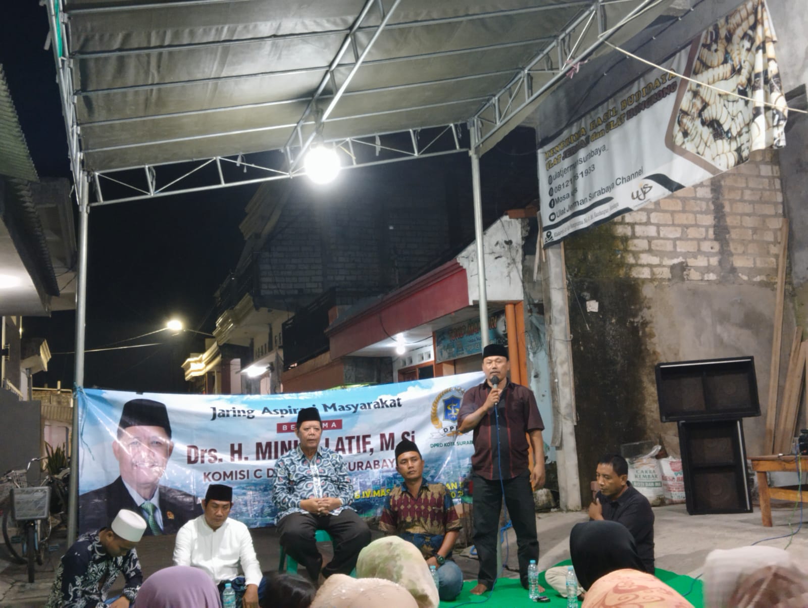 SURABAYA,Informasi-realita.net- Anggota Komisi C DPRD Surabaya H Minun Latif, mengadakan kunjungan reses di Klakah rejo Lor, gang Sampurna, RT 03, RW 09 Kelurahan Kandangan, kecamatan Benowo Surabaya, Senin (8/5/2023) ba’da isya.