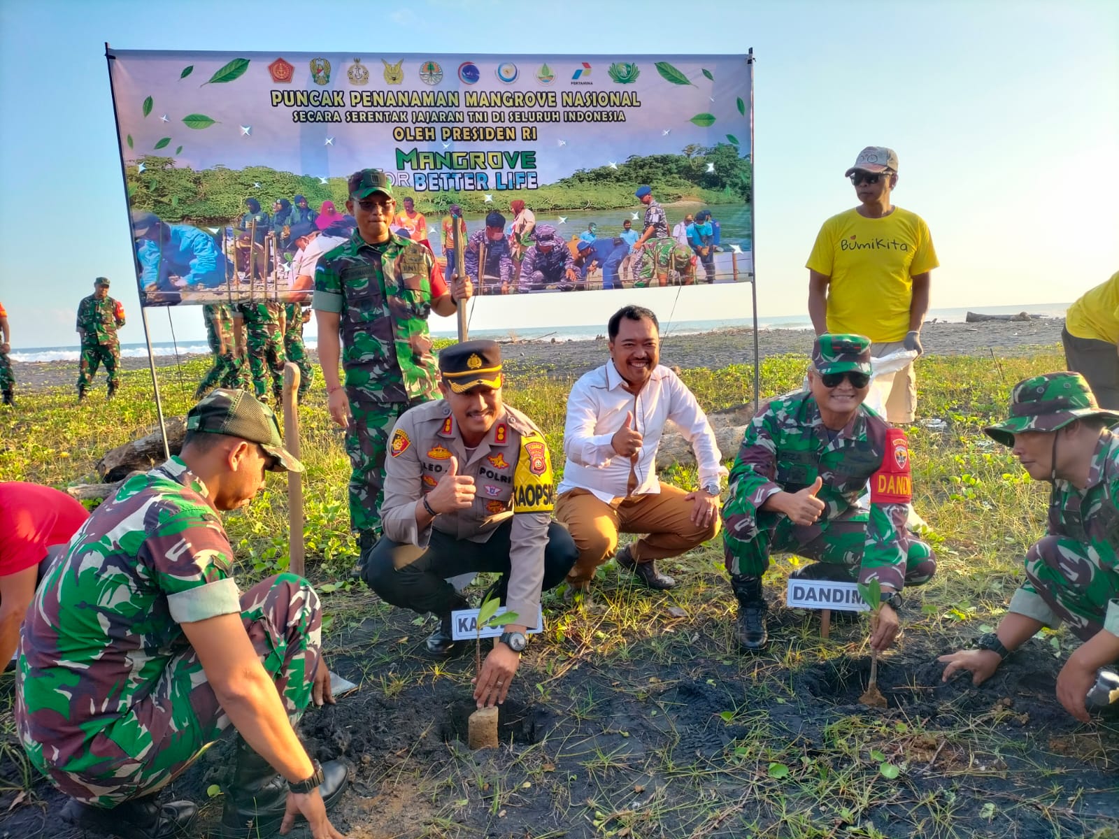 Informasi-Realita.net,Bali – Sinergisitas TNI POLRI di Tabanan lakukan penanaman pohon mangrove di Pantai Kelating, Desa Kelating, Kecamatan Kerambitan, Kabupaten Tabanan. Kegiatan berlangsung pada hari Senin tgl 15 Mei 2023 pukul sore hingga petang hari. Penanaman pohon mangrove dalam rangka penanaman Pohon Mangrove dalam rangka “Puncak Penanaman Pohon Mangrove Nasional secara serentak jajaran TNI seluruh Indonesia yang dipimpin Presiden RI Ir. Haji Joko Widodo dengan tema “Mangrove for Better Life”.