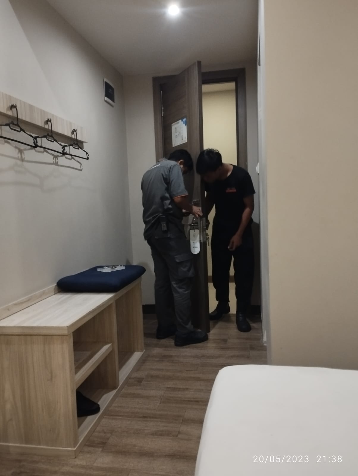 Setelah menuju kamar, tiba-tiba cardlock tidak bisa di buka dan mencoba menghubungi petugas dan mengatakan “ maaf saya ganti baterainya dulu pak mohon di tunggu pak,” ucap seorang petugas