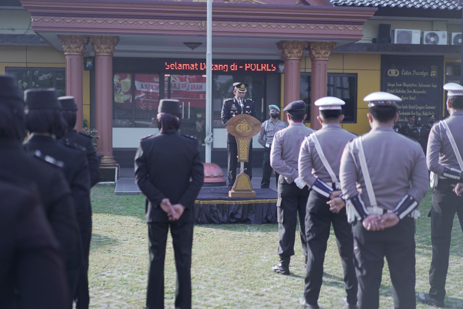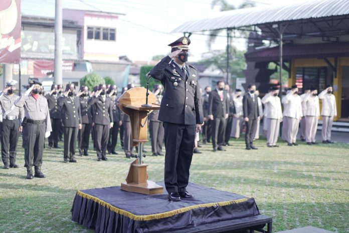 Polres Blitar Kota menggelar upacara peringatan Hari Lahir Pancasila di Lapangan Depan Apel Mapolres Blitar Kota, pada Kamis (01/06).