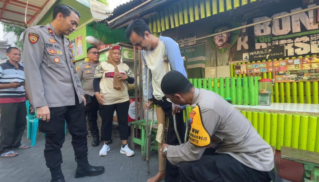 Informasi-Realita.net,Surabaya – orang penjual kopi akhirnya mendapatkan bantuan kaki palsu dari Polsek Simokertoberkat, Program baru yakni Polisi RW yang digagas oleh Polrestabes Surabaya.