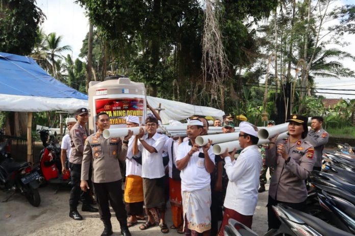 Informasi-realita.net, Bali – Dalam rangka memperingati Hari Bhayangkara ke 77 Tahun 2023 Kepolisian daerah Bali bekerjasama dengan PT. Tirta Infestama Aqua Mambal, memberikan bantuan air bersih (Sumur Bor) di Pura Dauh Pasar Binong, Banjar Binong, Desa Werdhi Bhuana, Kecamatan Mengwi, Kabupaten Badung, Bali. Jumat, (9/6/2023) pukul 09.00 Wita.