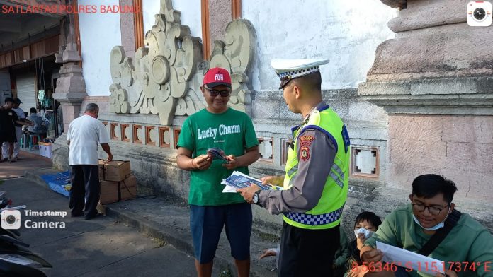 Informasi-Realita.net,Bali – Sebagai bentuk upaya meminimalisir terjadinya pelanggaran lalu lintas, Satuan Lalu Lintas melalui Unit Kamsel melaksanakan kegiatan sosialisasi dan edukasi ke masyarakat diberbagai tempat keramaian seperti di lokasi pasar hewan Beringkit Jln Raya I Gst Ngr Rai Desa Mengwitani Kecamatan Mengwi Kabupaten Badung, Bali. Rabu 28Juni 2023 pagi