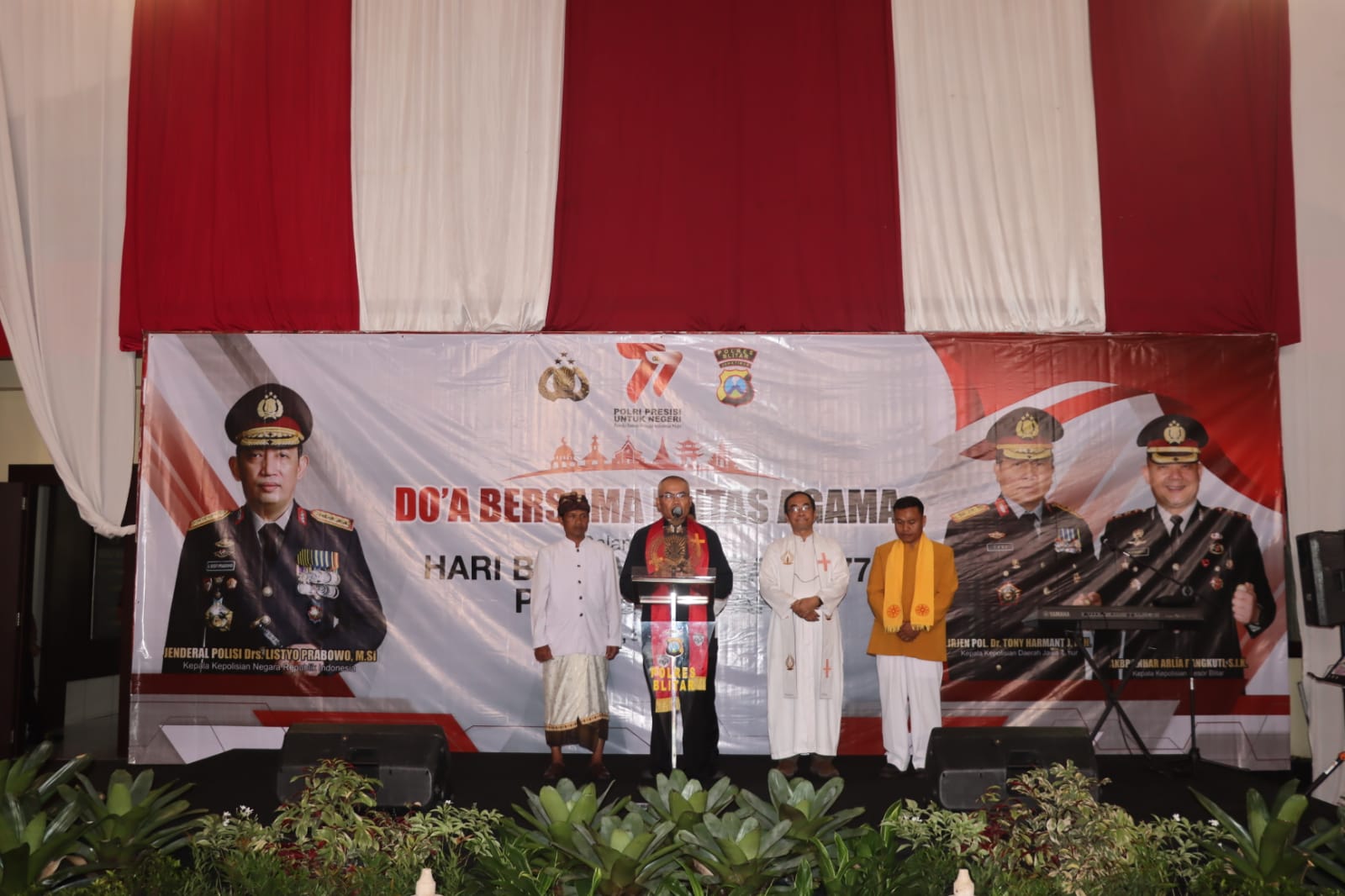 Dalam perayaan Hari Ulang Tahun (HUT) Bhayangkara ke-77, Polres Blitar mengadakan acara istimewa doa bersama lintas agama, di Gedung Hoegeng, pada Senin (03/07).
