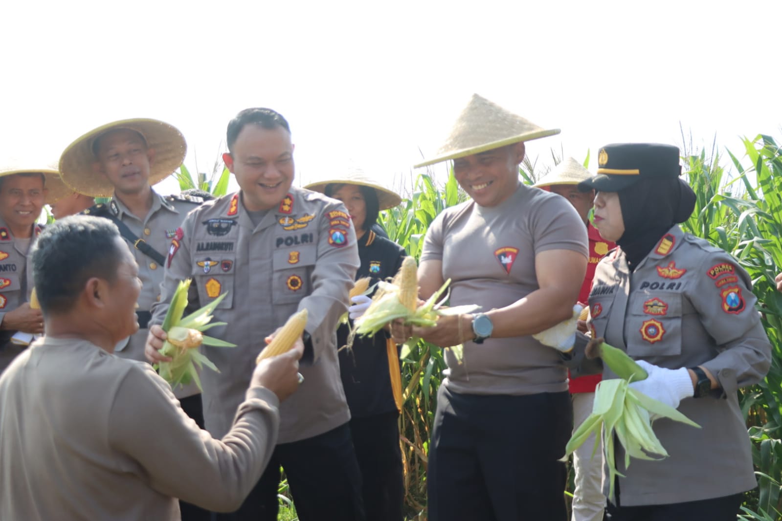 Manfaatkan Lahan Tidur, Polres Blitar Panen Jagung