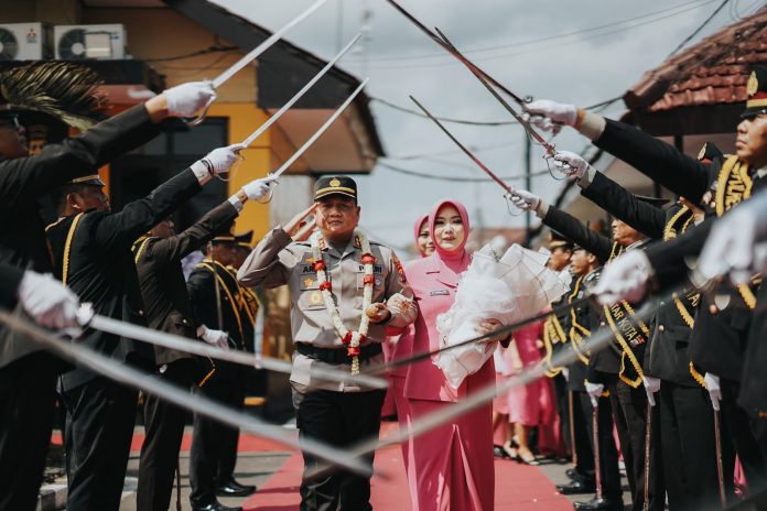 Setelah penyambutan, ada proses penyerahan jabatan dari Kapolres Lama AKBP Argowiyono kepada Kapolres Baru AKBP Danang Setiyo.