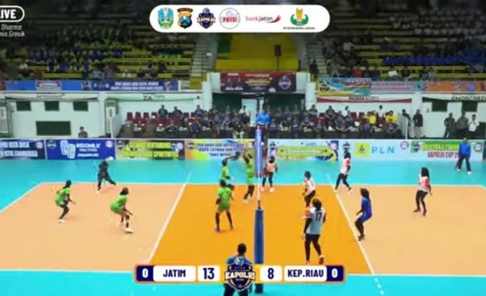Informasi-Realita.net,Gresik – Pertandingan Voli di ajang olahraga bergengsi Kapolri Cup 2023, Tim Voli Putri Jatim berhasil mengalahkan tim voli putri dari Kepalauan Riau (Kepri) pada seri II yang digelar di GOR Tri Dharma Petrokimia Gresik, Senin ( 14/8).
