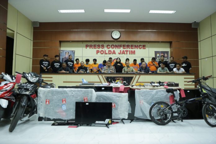 Hal itu seperti disampaikan oleh Kabid Humas Polda Jatim Kombes Pol Dirmanto yang didampingi Wadirreskrimsus Polda Jatim AKBP Piter Yanottama dan Kasubdit III Jatanras Polda Jatim AKBP Lintar Mahardhono, saat gelar konferensi pers pada Selasa (15/8/2023).
