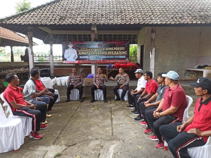 Informasi-realita.net,Bali – Kepala Kepolisian Resor Badung AKBP Teguh Priyo Wasono, SIK Jumat Curhat di Wantilan Jaba Pura Marajapati, Desa Adat Baha, Desa Baha Kecamatan Mengwi Kabupaten Badung, Bali pada