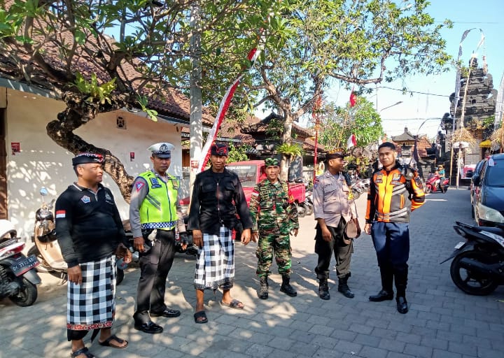 Informasi-realita.net,Bali – Aiptu I Putu Suastika selaku Polisi Banjar Kedaton Desa Kesiman Petilan bersinergi dengan Bhabinkamtibmas Desa Kesiman Petilan Bripka I Ketut Kariawan dan Babinsa bersama Pecalang Desa Kesiman Petilan melaksanakan pengamanan kegiatan Ngupasaksi Lokasabha VII, Tahun 2023 PGSDT (Para Gotra Santana Dalem Tarukan) Kota Denpasar, yang bertempat di Pura Dalem Kedatuan Kesiman, Jln WR Supratman, Banjar Kedaton, Desa Kesiman Petilan Denpasar Timur, Sabtu (26/08/2023) pukul 15.00 wita.