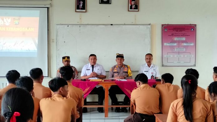 Informasi-Realita.net,Bali – Dalam rangka mencintai NKRI tanpa syarat apapun membelanya apabila terjadi ancaman dari pihak manapun, Kepala Kepolisian Resor Badung AKBP Teguh Priyo Wasono, SIK., didampingi Kapolsek Abiansemal Kompol I Gusti Made Sudarma Putra, S.Sos., S.H., M.A.P., memberikan motivasi di SMA N 1 Abiansemal, Kecamatan Abiansemal, Kabupaten Badung, Bali. Rabu, (13/9) pagi.