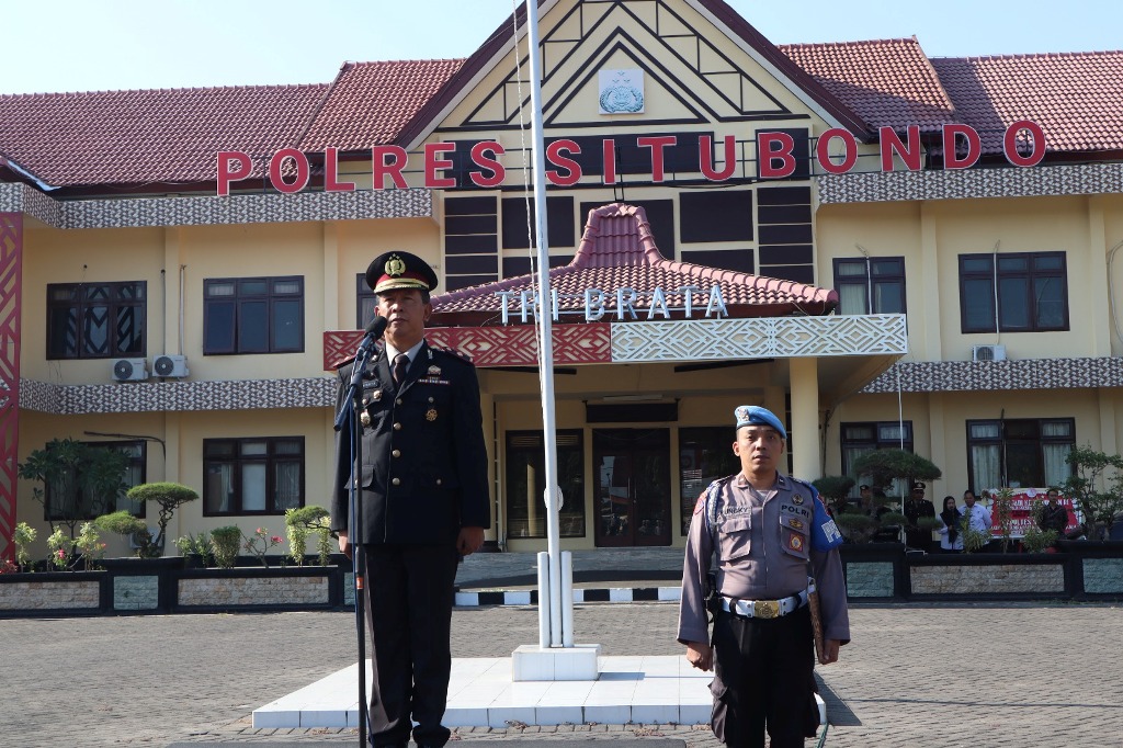 Upacara dihadiri pejabat utama Polres Situbondo di antaranya para Kabag, para Kasat, para Kapolsek jajaran, Perwira Staf serta para Bintara dan ASN.