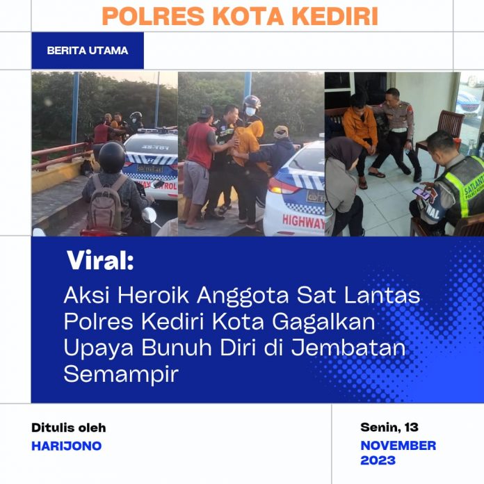 Kasat Lantas Polres Kediri Kota AKP Andini Puspa Nugraha S.T.K.,S.I.K. menerangkan bahwa betul ada peristiwa tersebut, yang mana anggota kami yang kebetulan sedang melaksanakan pengaturan pagi di Simpang Empat Mataram Timur mendapatan informasi dari pengguna jalan bahwa ada seorang laki laki yang duduk di sisi pinggir jembatan Sungai Brantas,