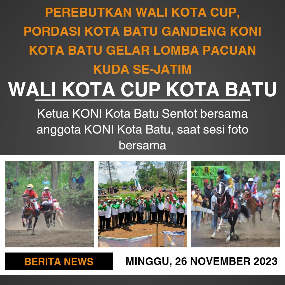 “Disela perlombaan ini juga dilaksanakan Pengukuhan Pengurus Pordasi Kota Batu dan pemberian secara simbolis piala bagi para pemenang lomba pacuan kuda ini,” tambahnya.