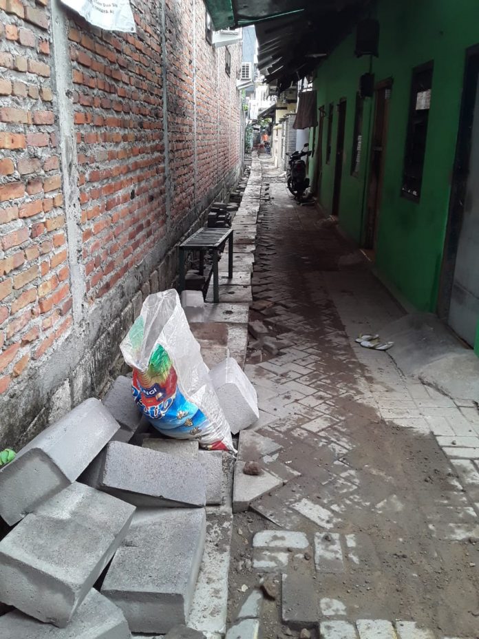 Salah satunya, proyek di Jalan Kedinding Tengah I Swadaya RT 04, RW 02, Kecamatan Kenjeran, Surabaya, amburadul dan tidak sesuai operasional pekerjaan (SOP)