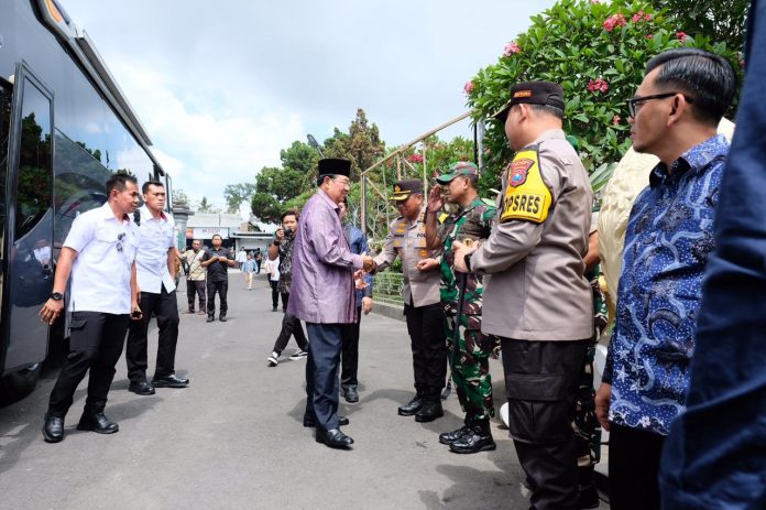 “Kami siagakan sejumlah 198 personel dari Polres Blitar Kota, 30 TNI, 20 pers Dishub dan 15 Satpol PP, dan Kami berupaya secara maksimal untuk menjaga situasi yang aman dan kondusif selama kunjungan Presiden Ke-6 di Blitar,” ujar Kapolres Blitar Kota AKBP Danang.