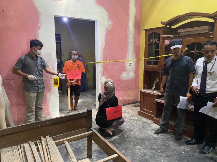 Polres Blitar Kota menggelar rekonstruksi kasus pembunuhan yang terjadi di Desa Bacem Kecamatan Ponggok Kabupaten Blitar, pada Jum’at (08/12).