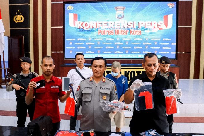 Tersangka TI (40), diamankan Tim Resmob Polres Blitar Kota dan Polsek Ponggok saat berada di rumahnya yang beralamat di Bence Garum Kabupaten Blitar.