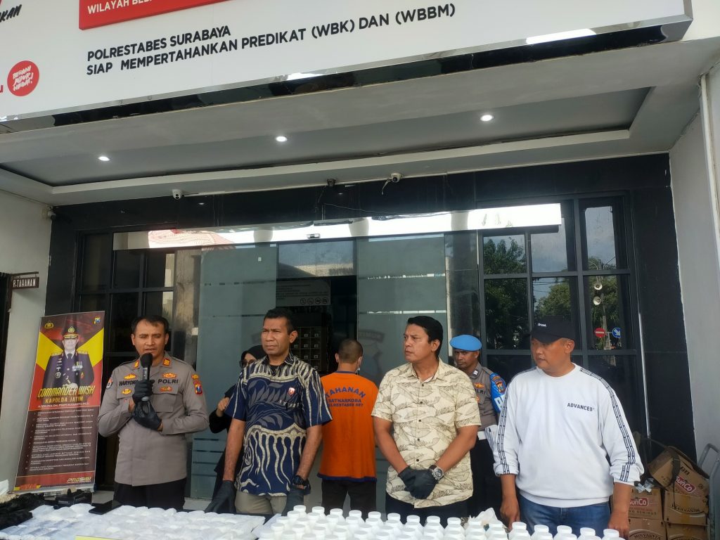 Kapolrestabes Surabaya Kombes Pol Pasma Royce melalui Wakasat narkoba Kompol Fadilla didampingi Kasihumas AKP Hariyoko, membenarkan tersangka diamankan berawal adanya informasi dari masyarakat bahwa banyaknya peredaran dobel L diwilayah Putat jaya.