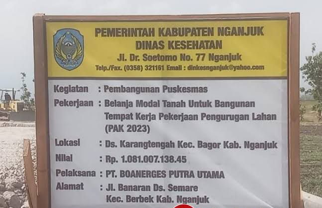 Sesuai data LPSE Kabupaten Nganjuk pada Dinas Kesehatan Kabupaten Nganjuk terdapat data sengan judul paket ” Belanja Modal Tanah untuk bangunan tempat kerja pekerjaan pengurukan lahan Tahun Anggaran 2023.