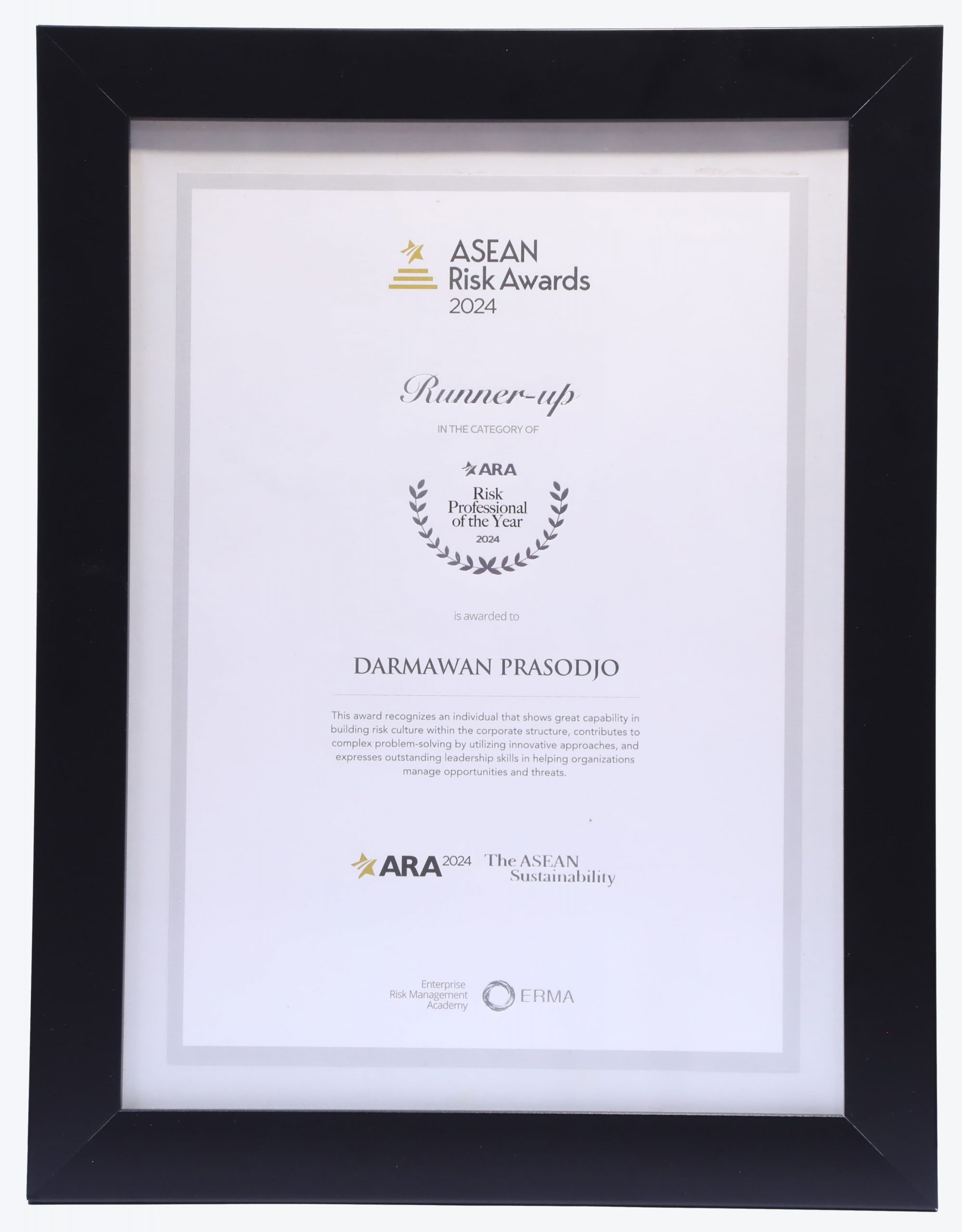 ARA merupakan ajang penghargaan tahunan untuk mengakui organisasi yang telah menunjukkan kemampuannya dalam menerapkan strategi manajemen risiko perusahaan secara efektif dalam mengatasi tantangan dan peluang kompleks yang muncul pada lingkungan bisnis se-Asia Tenggara.