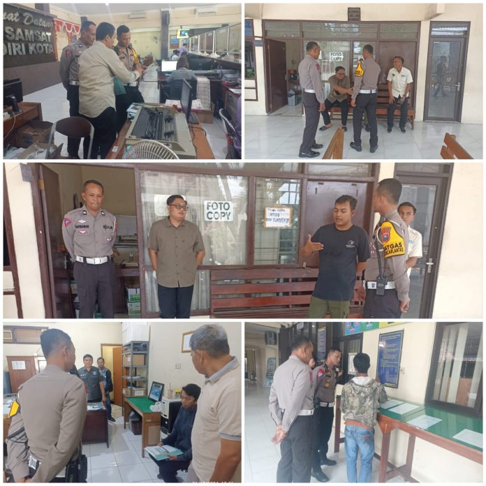 Kasatlantas Polres Kediri Kota AKP Afandy Dwi Takdir melakukan inspeksi mendadak ke KB Samsat Kediri Kota untuk memastikan pelayanan kepada masyarakat berjalan sesuai prosedur, pada Selasa 1 Oktober 2024 siang.