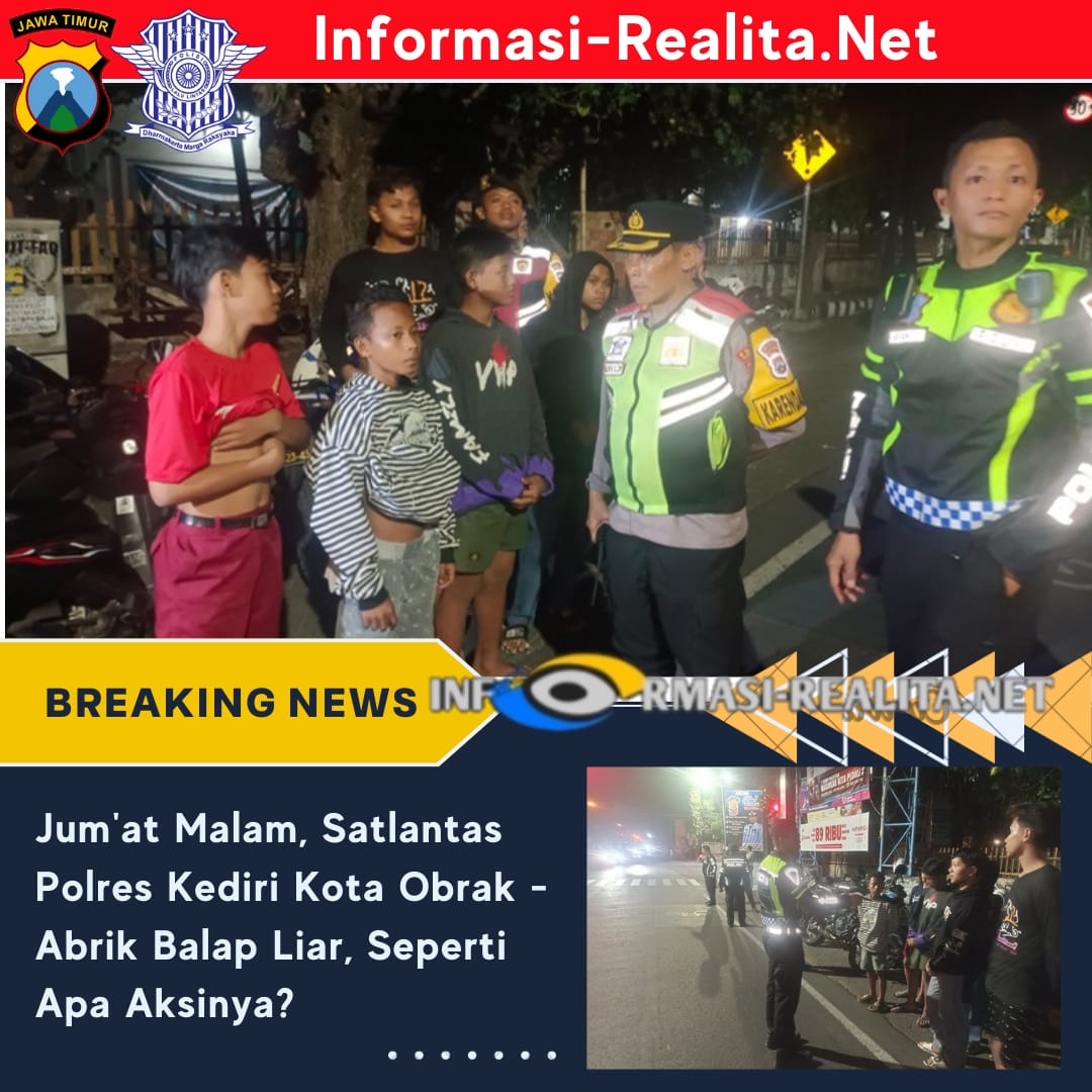 Informasi-realita.net || Kediri Kota – Istilah Jumat Gaul yang viral di platform media sosial Tik tok adalah ungkapan untuk menyebut tren kawula muda melakukan trek – trekan/ balapan liar di jalanan umum, dan dilakukan pada Jum’at malam.