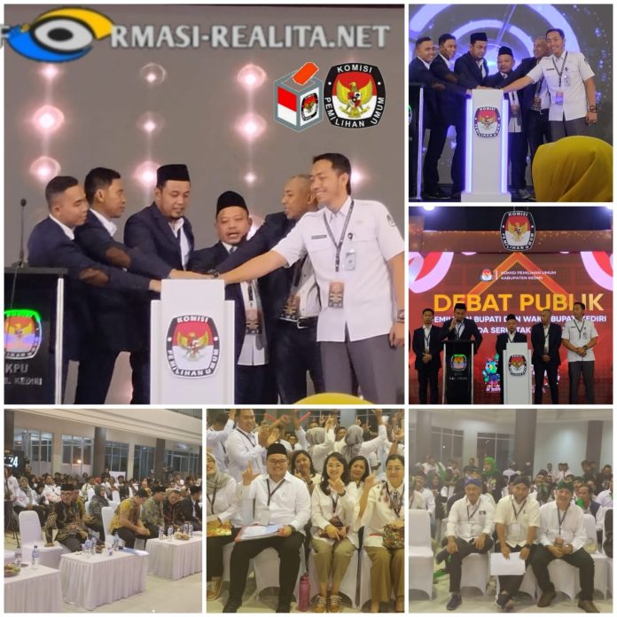 Informasi-realita.net || Kediri – Komisi Pemilihan Umum (KPU) Kabupaten Kediri kembali menggelar debat publik terakhir Pemilihan Bupati dan Wakil Bupati terakhir di Convention Hall Simpang Lima Gumul (SLG). Untuk mewujudkan Asta Cita Presiden RI, KPU Kabupaten Kediri menghadirkan pertanyaan dari Badan Narkotika Nasional (BNN) pada Debat Pamungkas Calon Bupati dan Wakil Bupati Kediri, pada hari Kamis malam, 14/11/2024.
